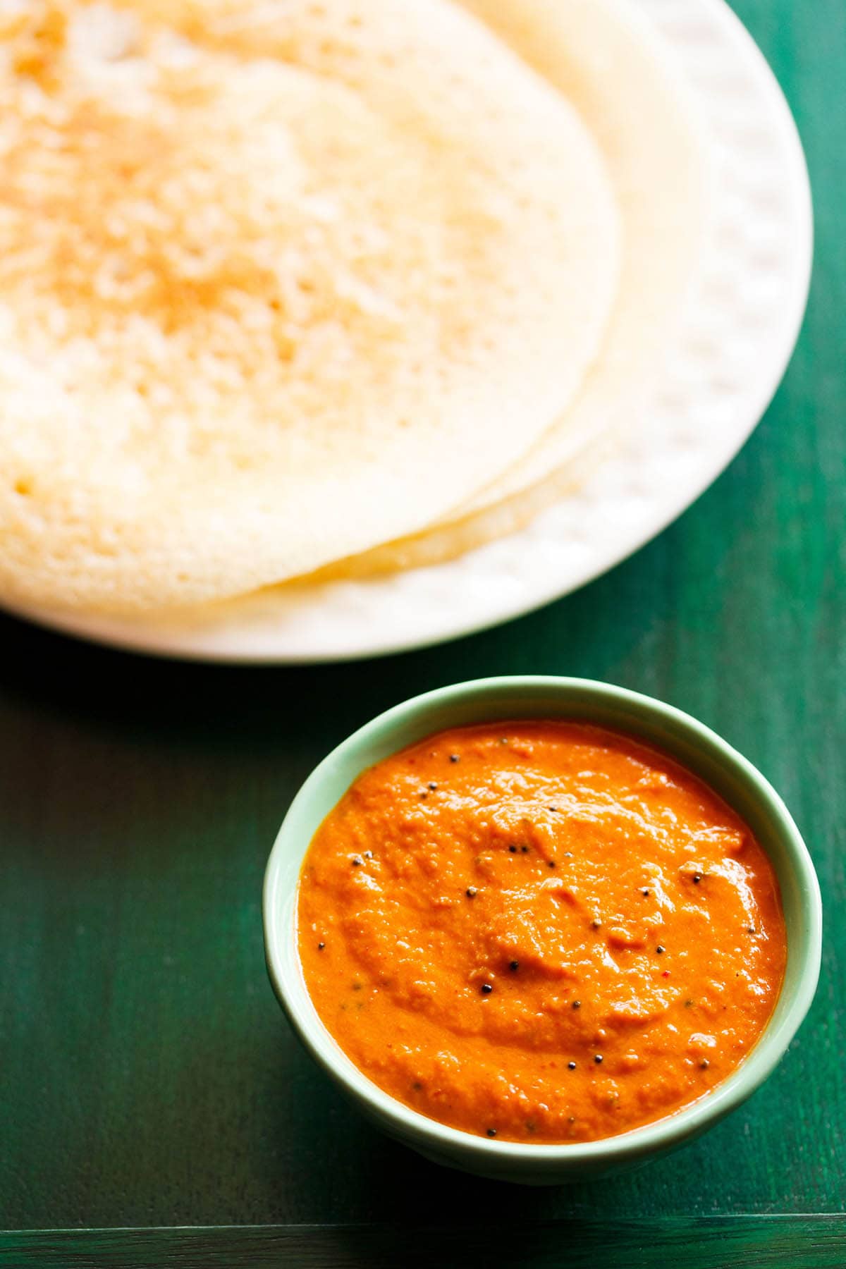 The color of the chutney will vary depending on the type of red chilies used. I prefer to add Kashmiri red chilies as they are low in heat and have a beautiful color. You can also use another Indian variety of mild chillies known as byadagi red chilies.
